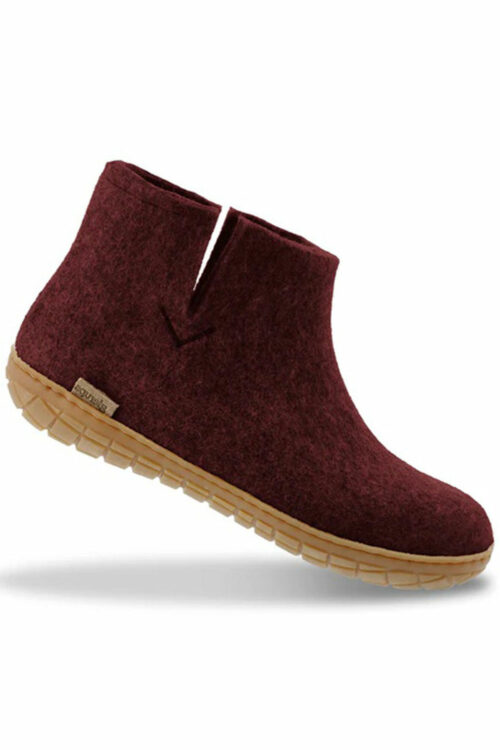 • Wollen slof laars – rubber zool – bordeauxrood