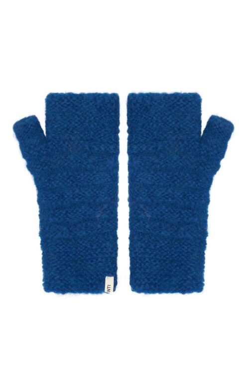 • Handgebreide blauwe vingerloze wanten