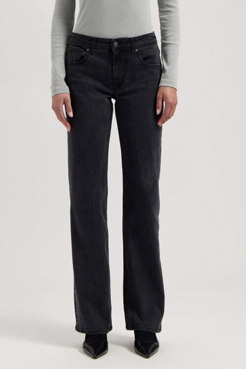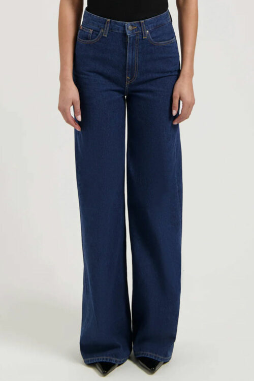 Spijkerbroek high loose wijde rechte pijp stone indigo
