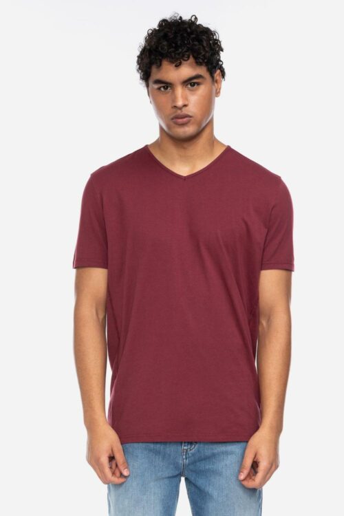 Basic t-shirt v-hals bordeauxrood