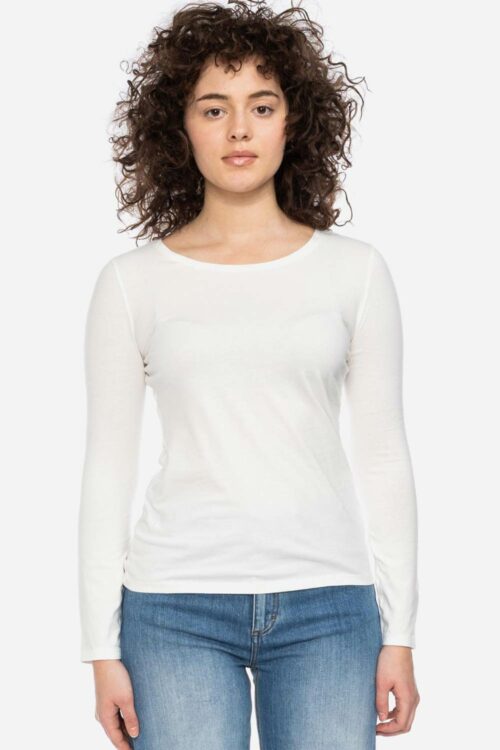 Basic longsleeve ronde hals 100% biokatoen pauwblauw