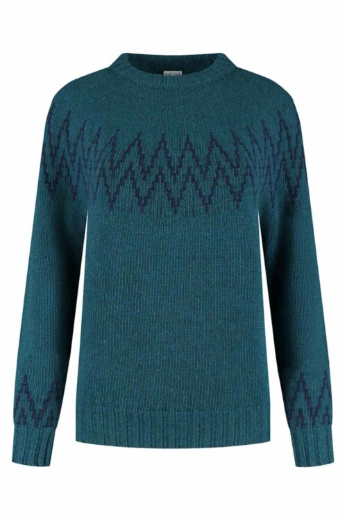 Korte kabeltrui olijfgroen van 100% recyclede wol