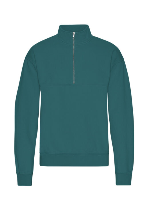 Zeegroene sweater trui met rits biokatoen