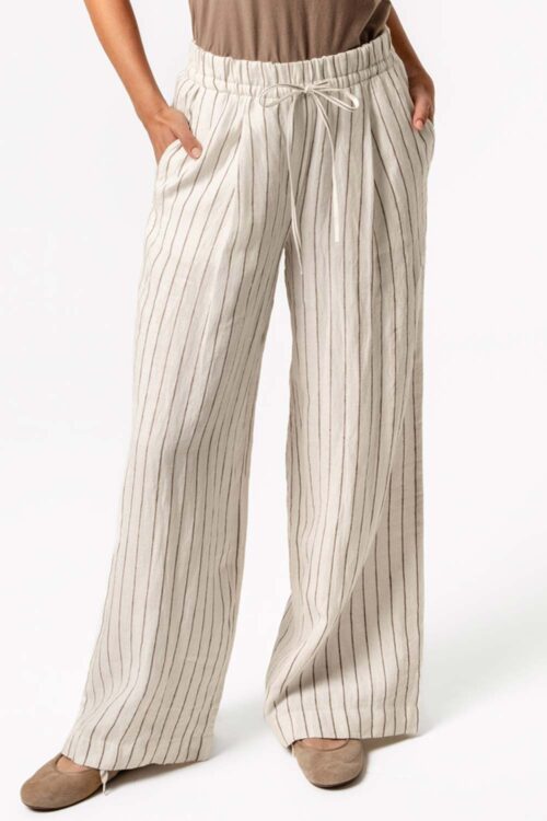 Linnen broek met bruin streepje