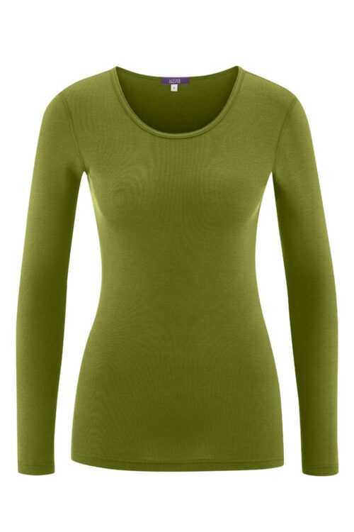 Shirt wol zijde lange mouw ronde hals lichtblauw