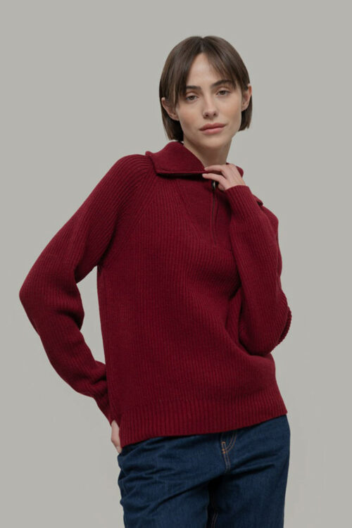 Herentrui ronde hals blauw-bordeaux melange van gerecyceld kasjmier