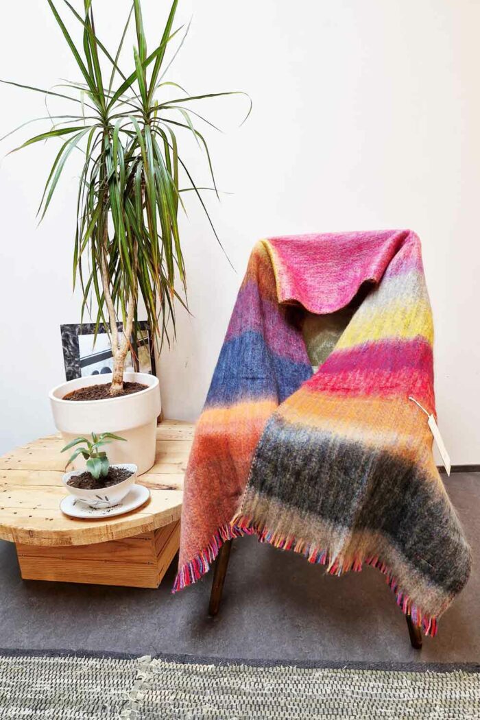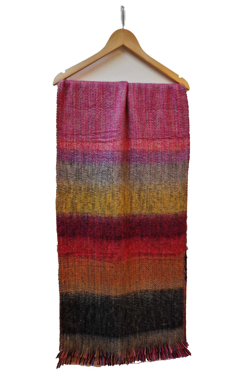 Voor deze sjaal heeft Inti Knitwear allerlei restjes wol bij elkaar gezocht en gekamd om de sjaal een luxe uitstraling te geven. Ook heerlijk voor op de bank als kleine plaid. De afmeting is ongeveer 200 bij 50 cm. Aan de uiteinden zitten korte franjes.