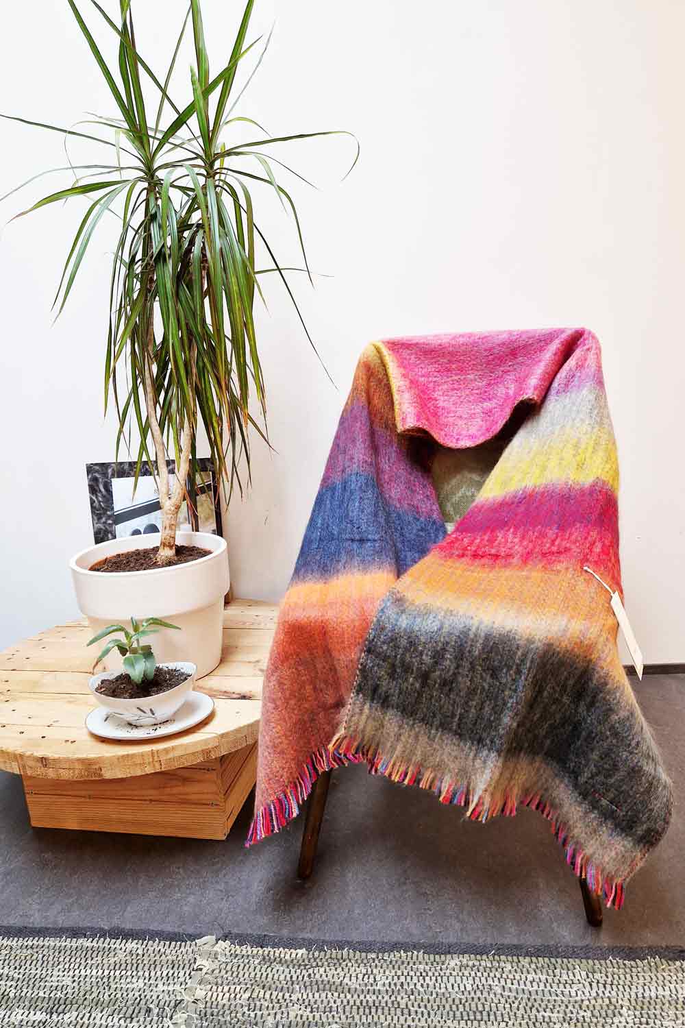 Alle sjaals zijn uniek omdat ze dus van restjes alpacawol zijn gemaakt. Materiaalmix: 76% wol, 24% acryl.