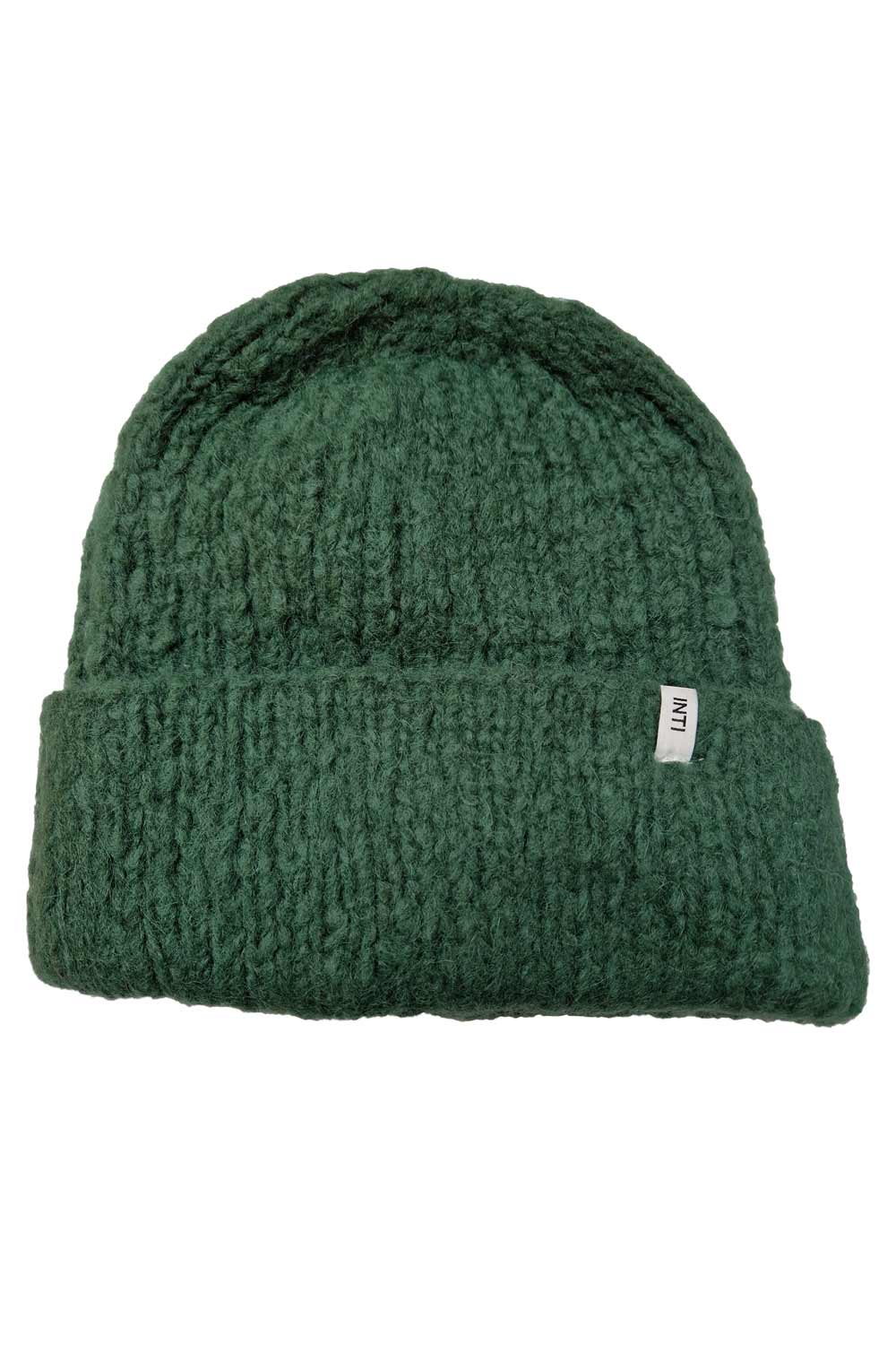 Muts met omslag. Materiaal: 85% baby alpacawol, 9% acryl en 6% nylon.