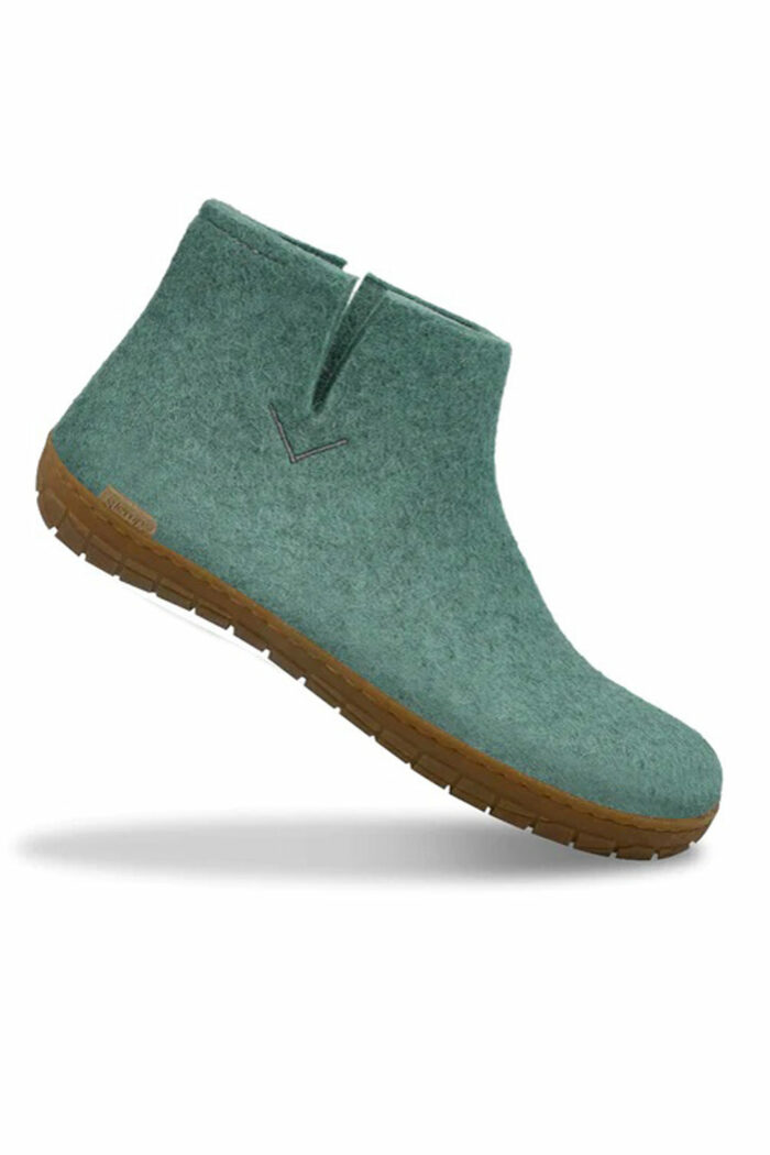 Wollen slof laars – rubber zool – lichtblauwgroen