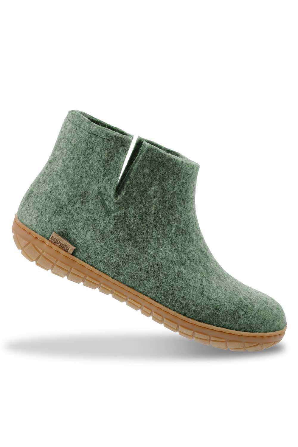 Deze heerlijk warme hoge vilten sloffen van Glerups zijn gemaakt van 100% natuurlijke wol. De kleur beet is lichtgroen.
