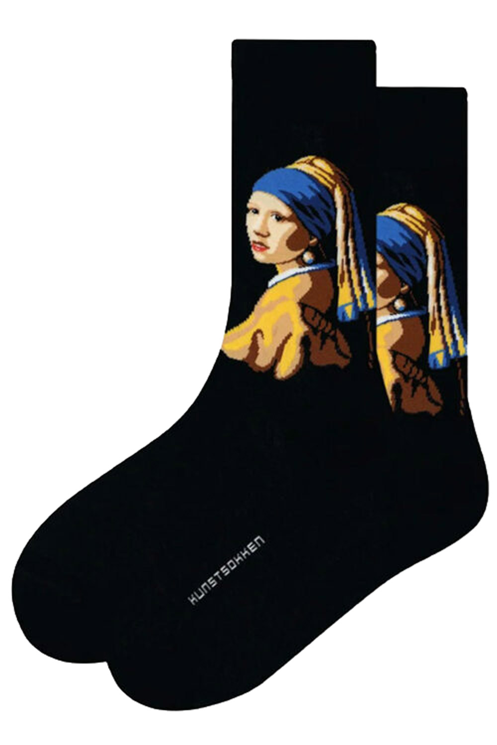 Sokken met het “Meisje met de Parel”. Johannes Vermeer schilderde het rond 1665, een van zijn meest mysterieuze en geliefde schilderijen.