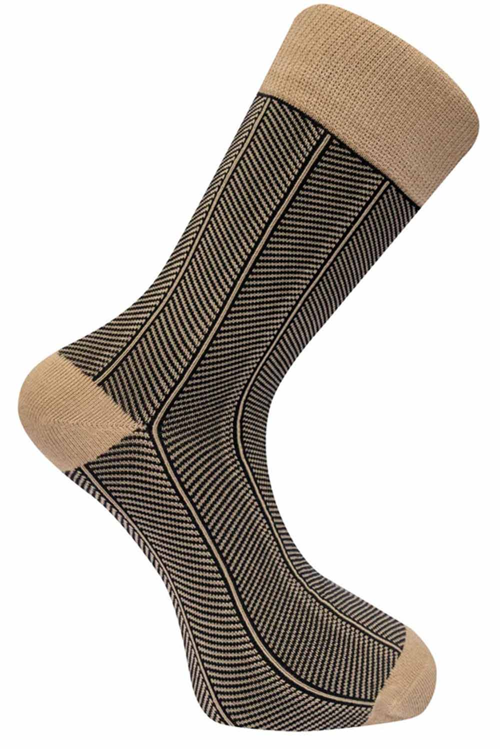 Sokken met een zwart met beige visgraatmotief van 80% biologisch katoen, 15% gerecycled polyester en 5% elastaan.