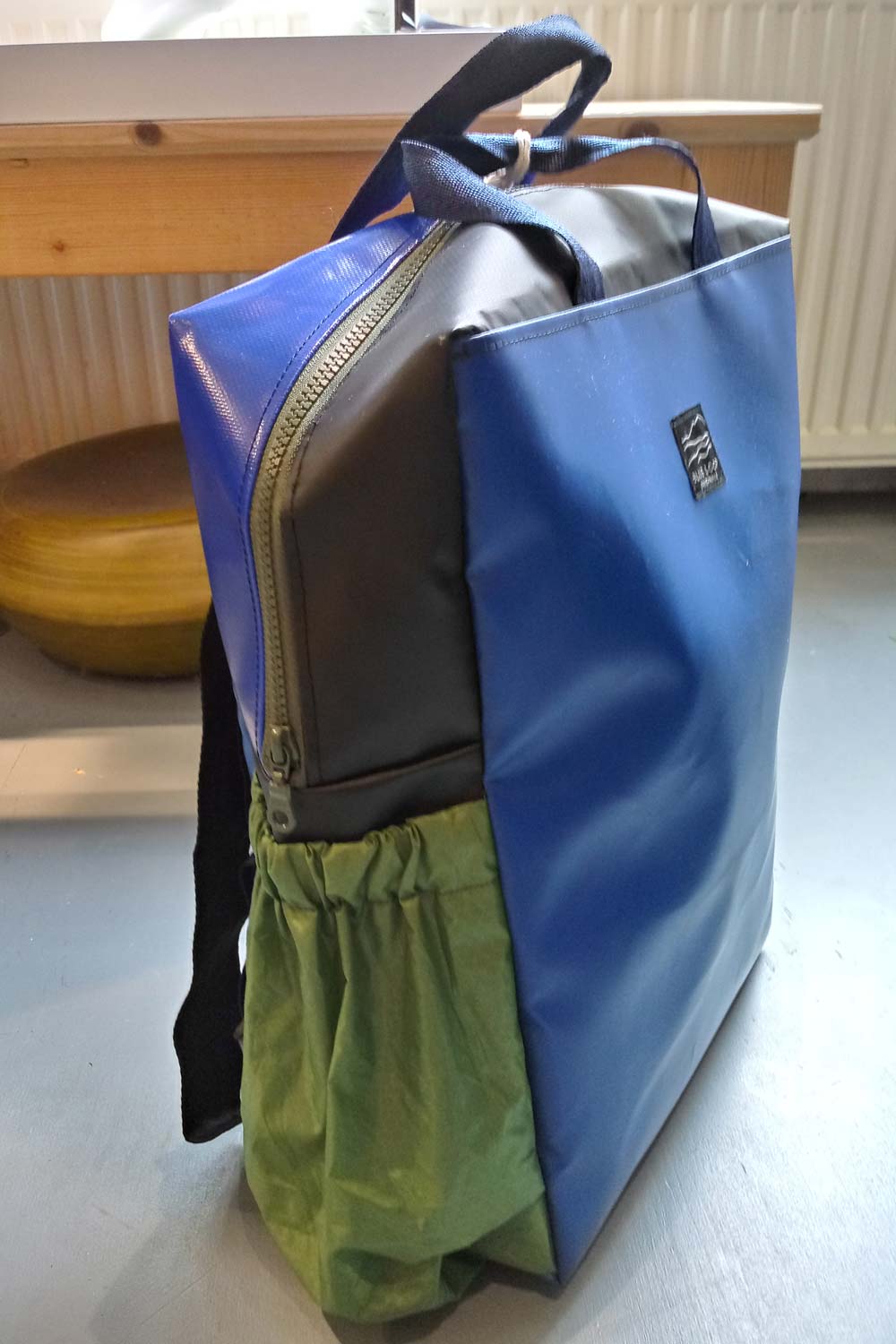 Originele rugtas van Bederlandse merk BlueLoop. De tas is gemaakt van recyclede tenten. Iedere tas is uniek! Binnenin zitten aparte vakjes voor portemonnee en telefoon.