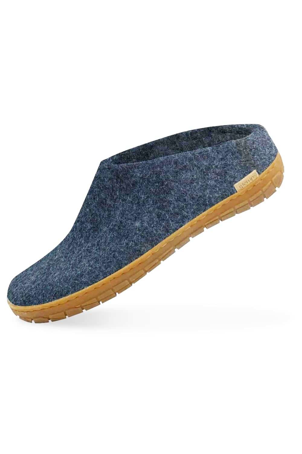 Wollen slof slipper – rubber zool denimblauw