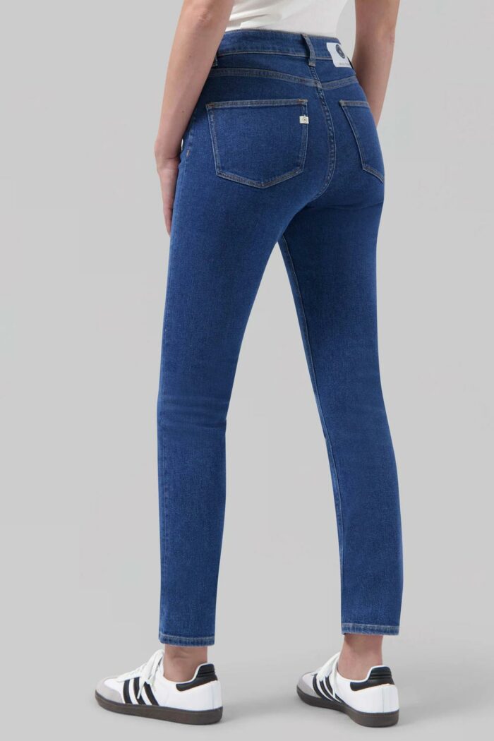 Dit model jeans heeft wat je noemt een regular fit met strakke pijp en halfhoge taille. De broek is gemaakt van 27% biologisch katoen, 25% TENCEL Lyocell x REFIBRA, 25% pre-consumer recycled katoen, 21% post-consumer recycled katoen, 2% recycled elastane.. Goed te combineren met sneakers of een hak. De broek is in 2 lengtematen verkrijgbaar en valt redelijk lang.