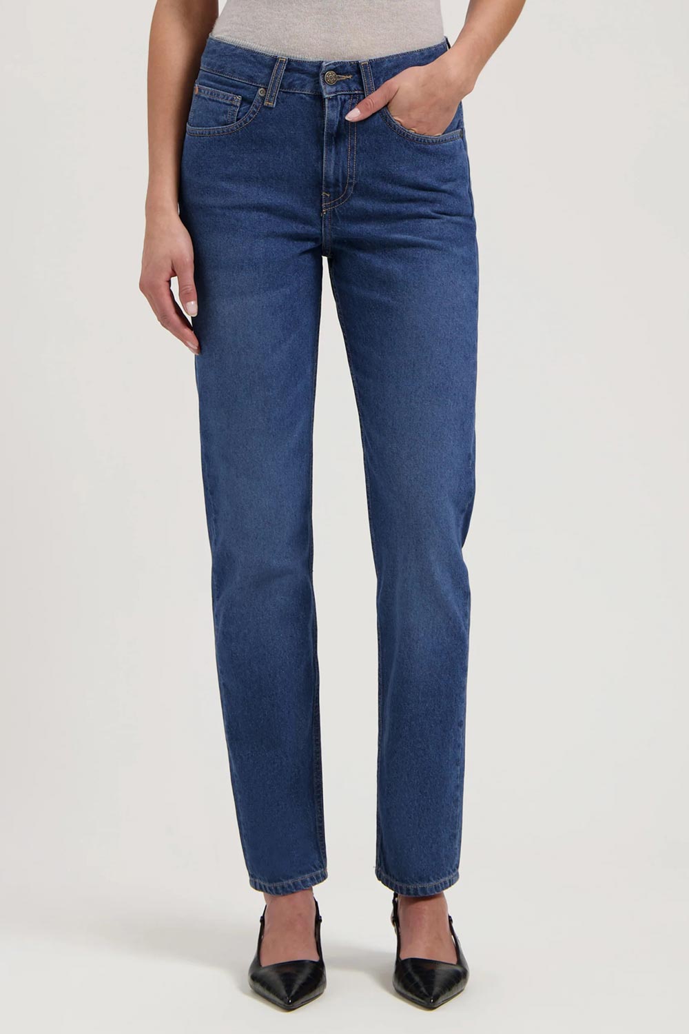 Damesjeans met rechte pijpen. (voorheen Easy go). Valt groot. Materiaal: Non-stretch denim: