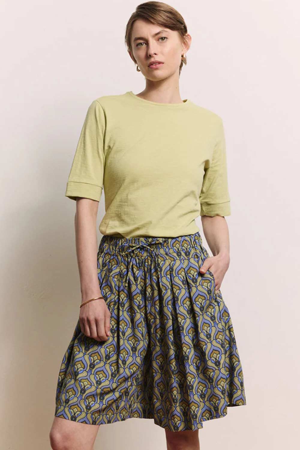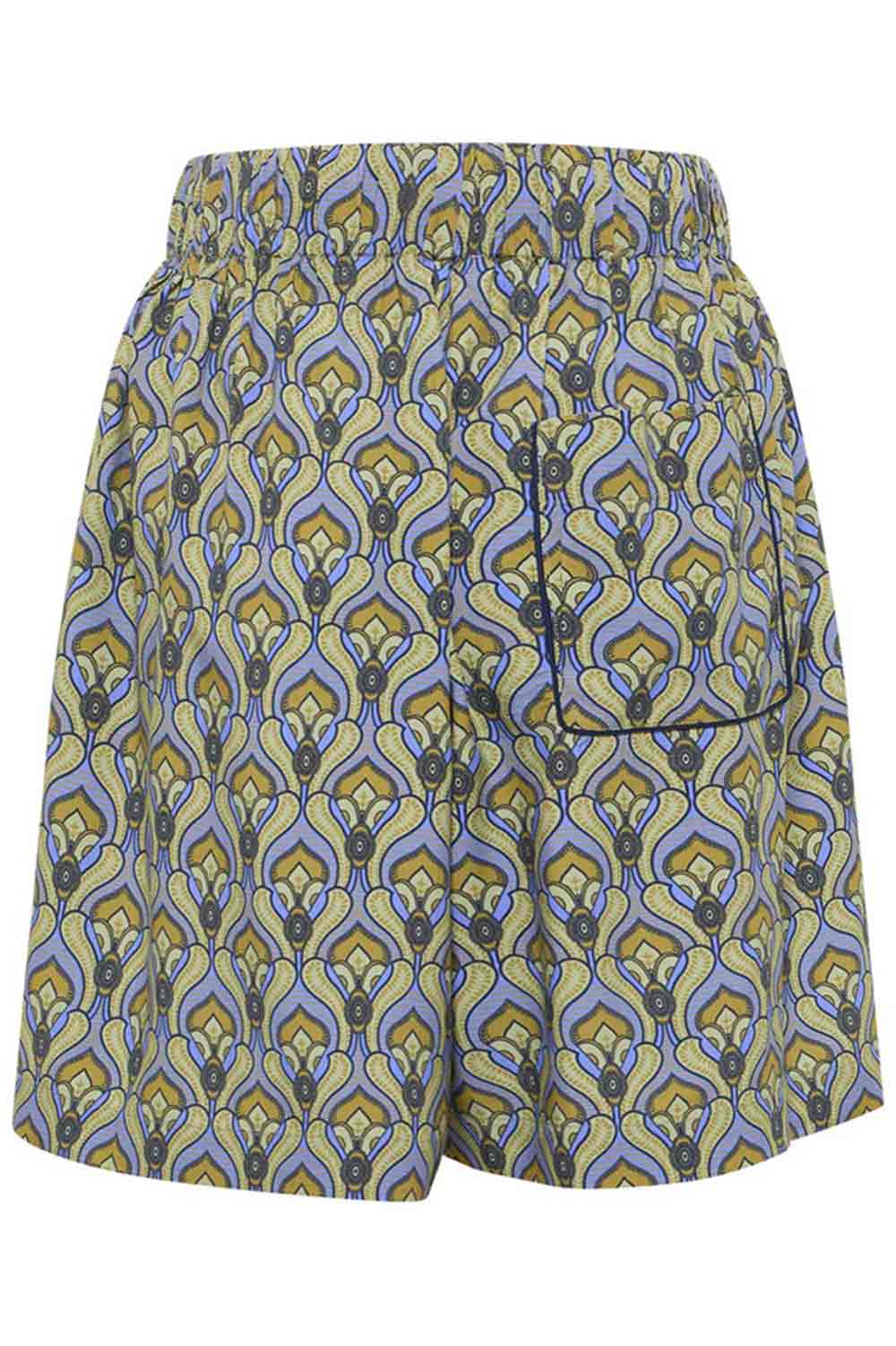 Korte wijde broekrok met print van soepele 100% Ecovero (geweven stof). Maatindicatie in maat 40: taille: 80 cm, binnenbeenlengte: 18 cm, zijlengte 50 cm.
