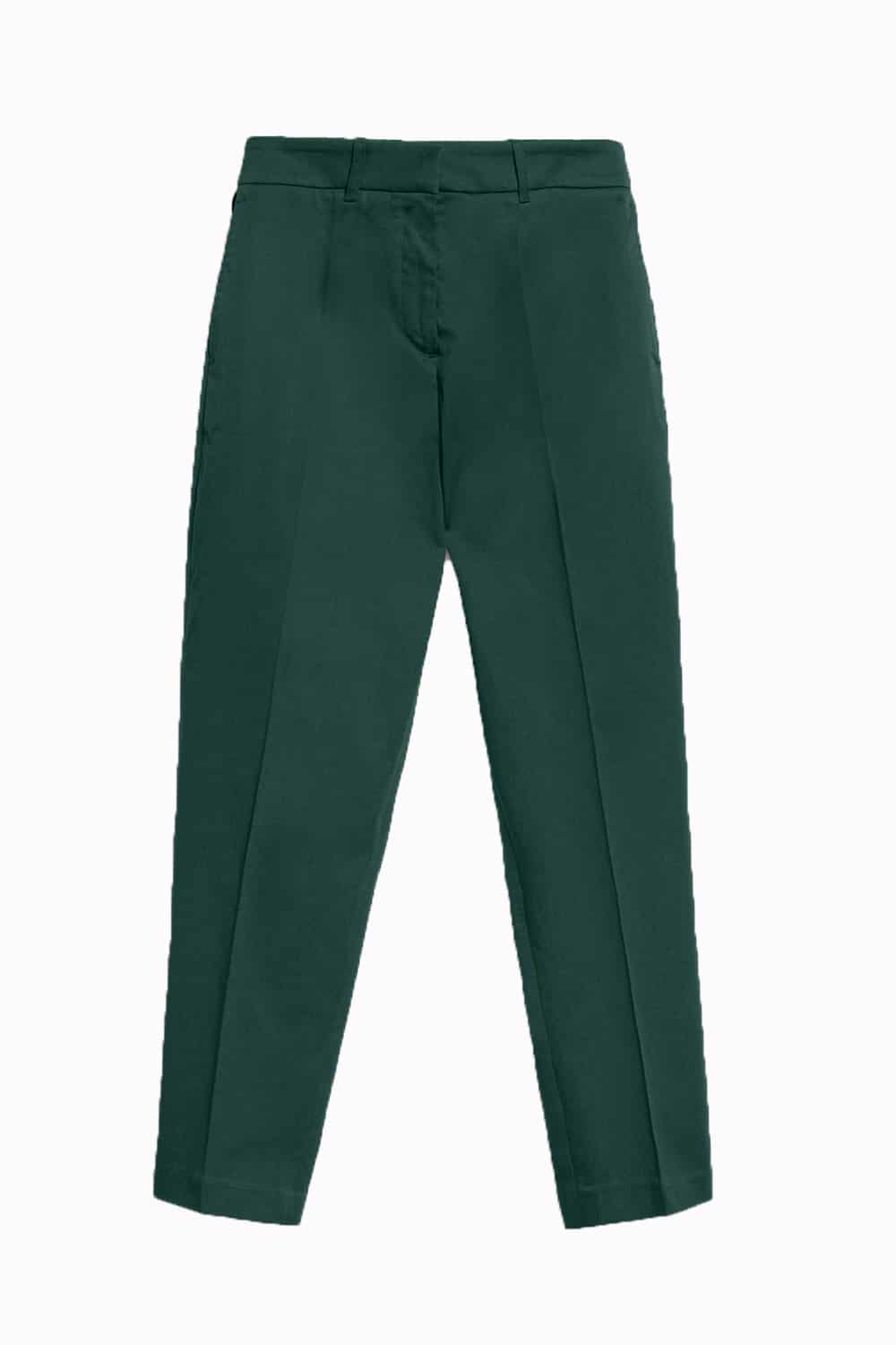 Mooie broek van 98% biokatoen en 2% elastaan. De groene broek met rechte, iets kortvallende pijpen heeft steekzakken.