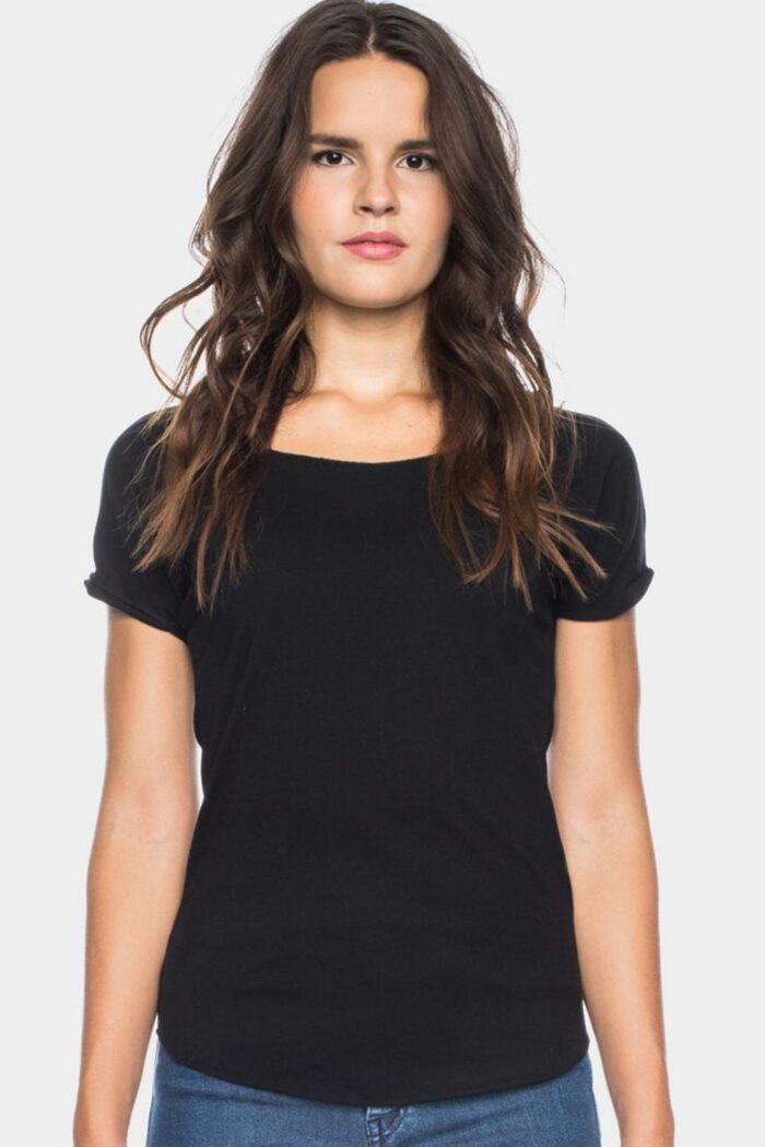 Mouwloos T-shirt van 100% biologische katoen. De onderkant loopt rond. Dit shirtje heeft geen zoompjes maar is wel afgewerkt aan hals en onderkant. Bij de “mouwen” is de stof opgerold.