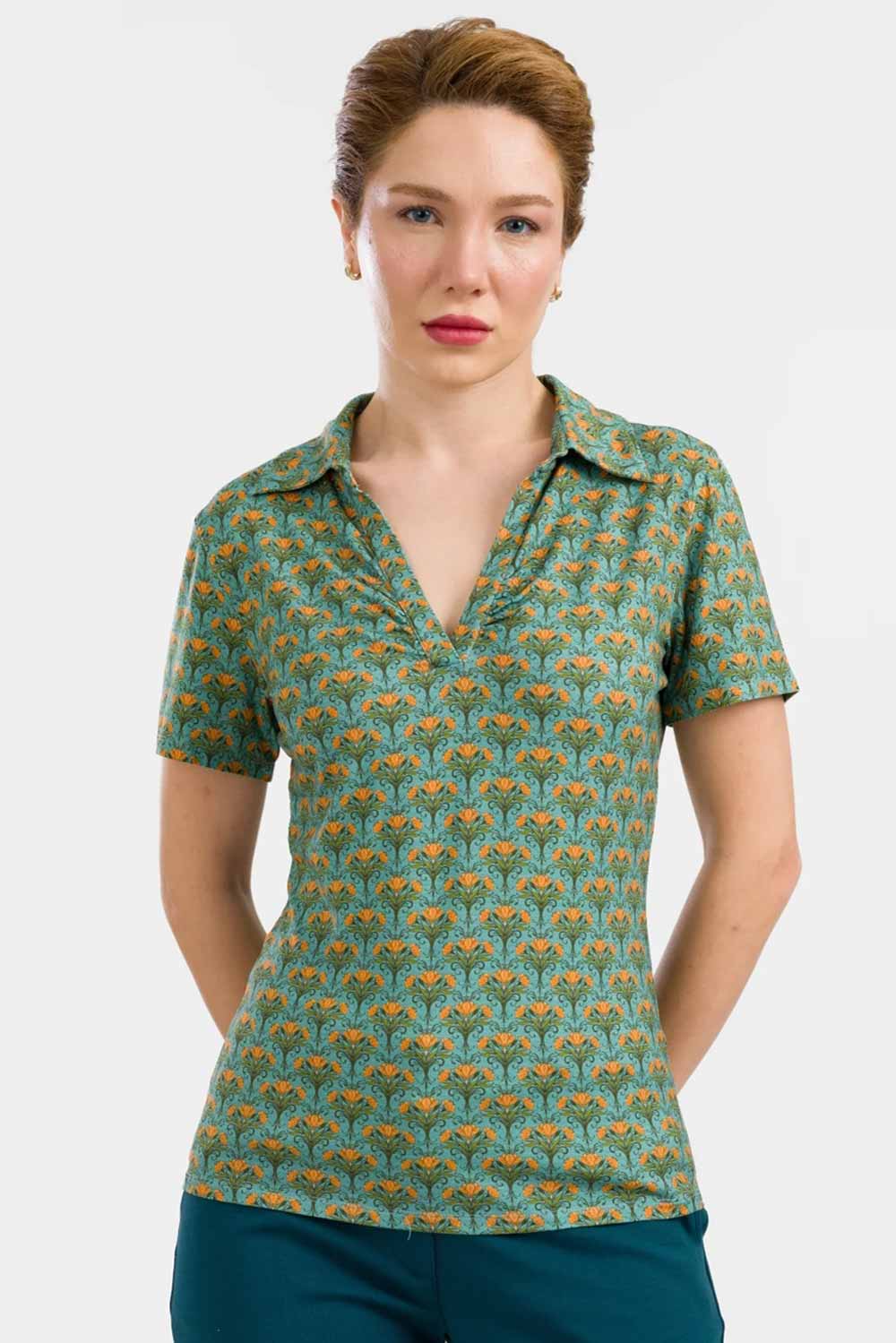 Shirt met kraagje en V-hals bloemen