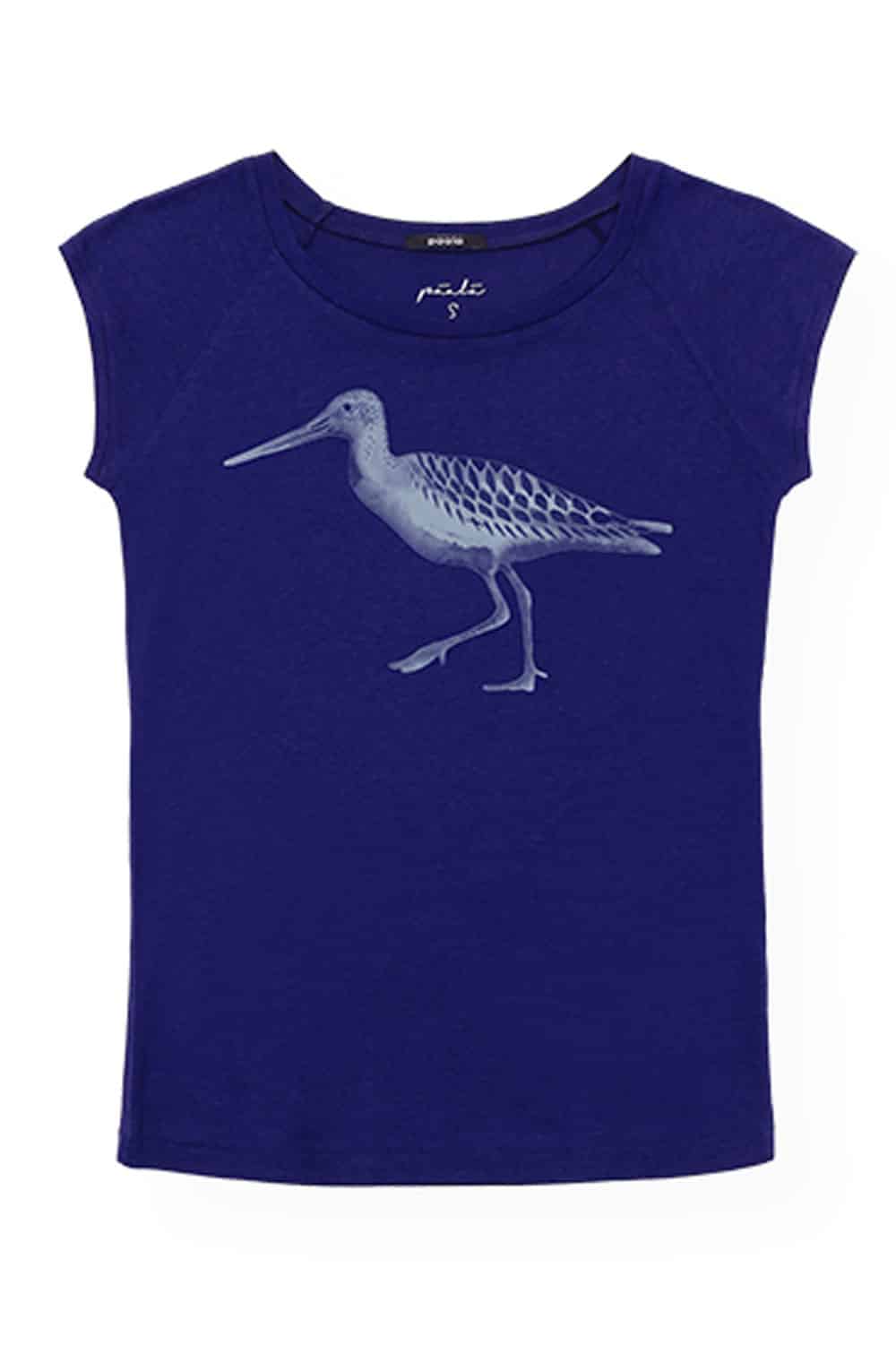 T-shirt bamboe-biokatoen met strandloper kobaltblauw