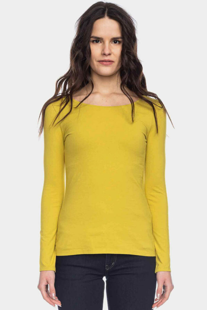 Basic longsleeve ronde hals 100% biokatoen geelgroen