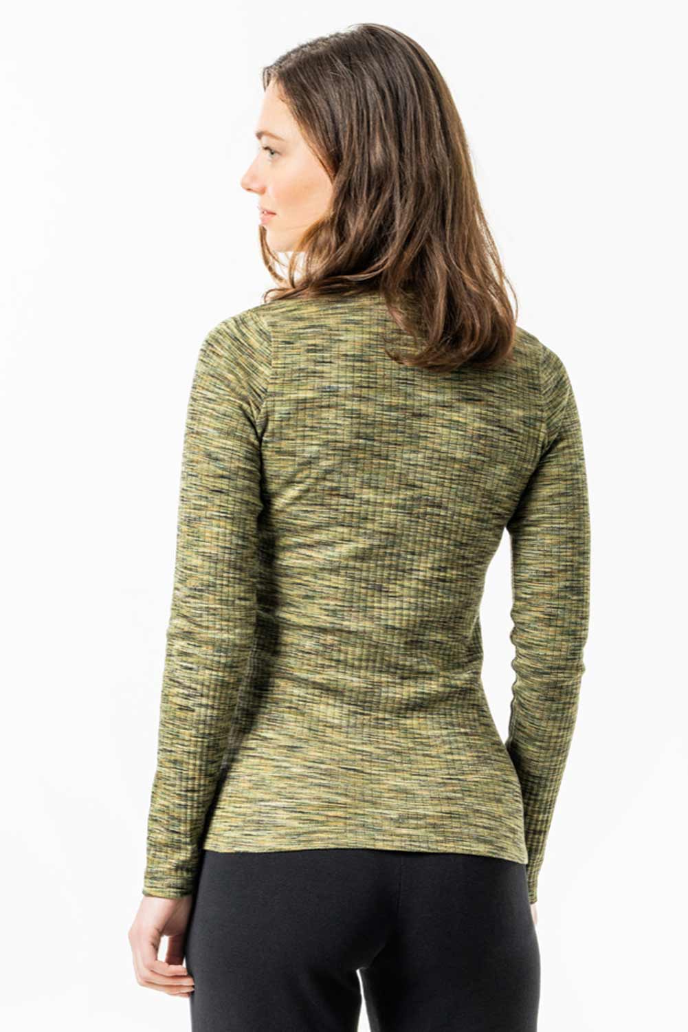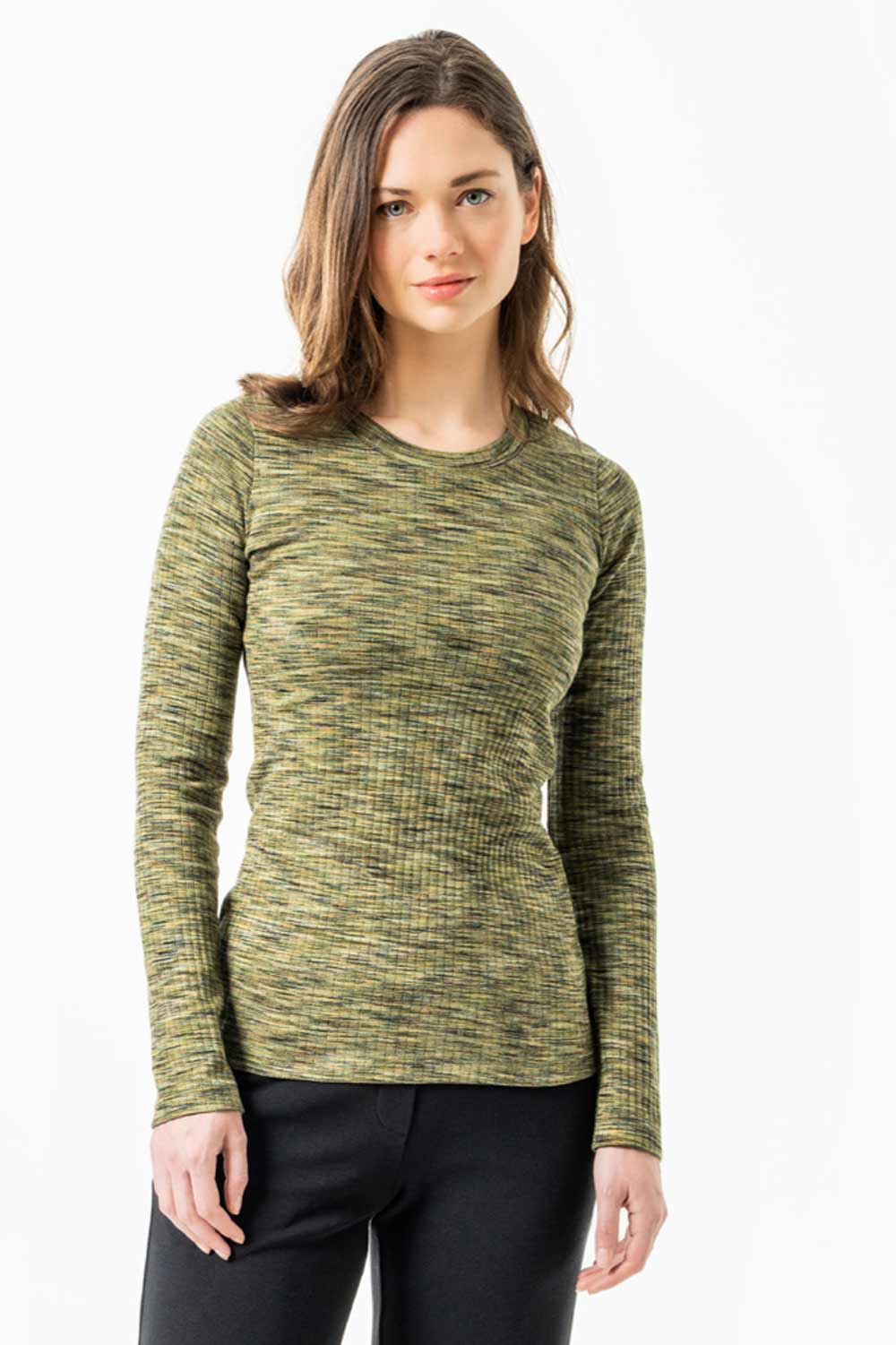Groengemeleerd ribshirt lange mouwen