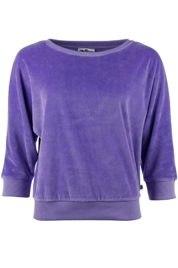 Een klassieker van Chills & Fever (voorheen Froy en Dind): de Sybille sweater. Deze velours trui heeft een ronde hals, driekwart mouwen en een mooie boord onderaan zodat hij leuk staat op hoog sluitende broeken of rokken.