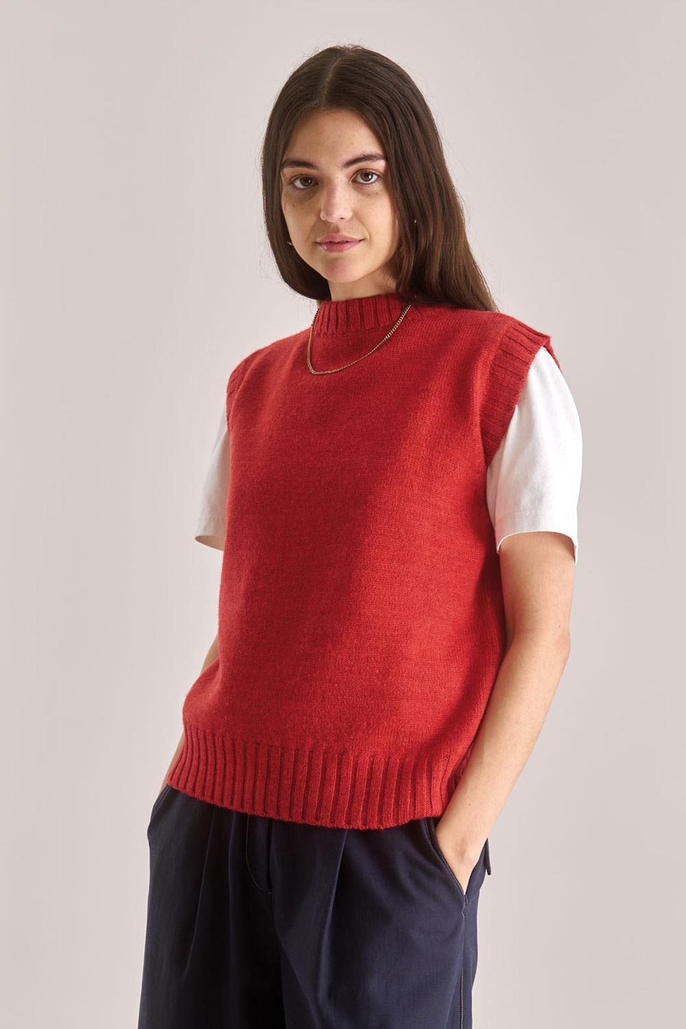 Gebreide lamswollen spencer rood