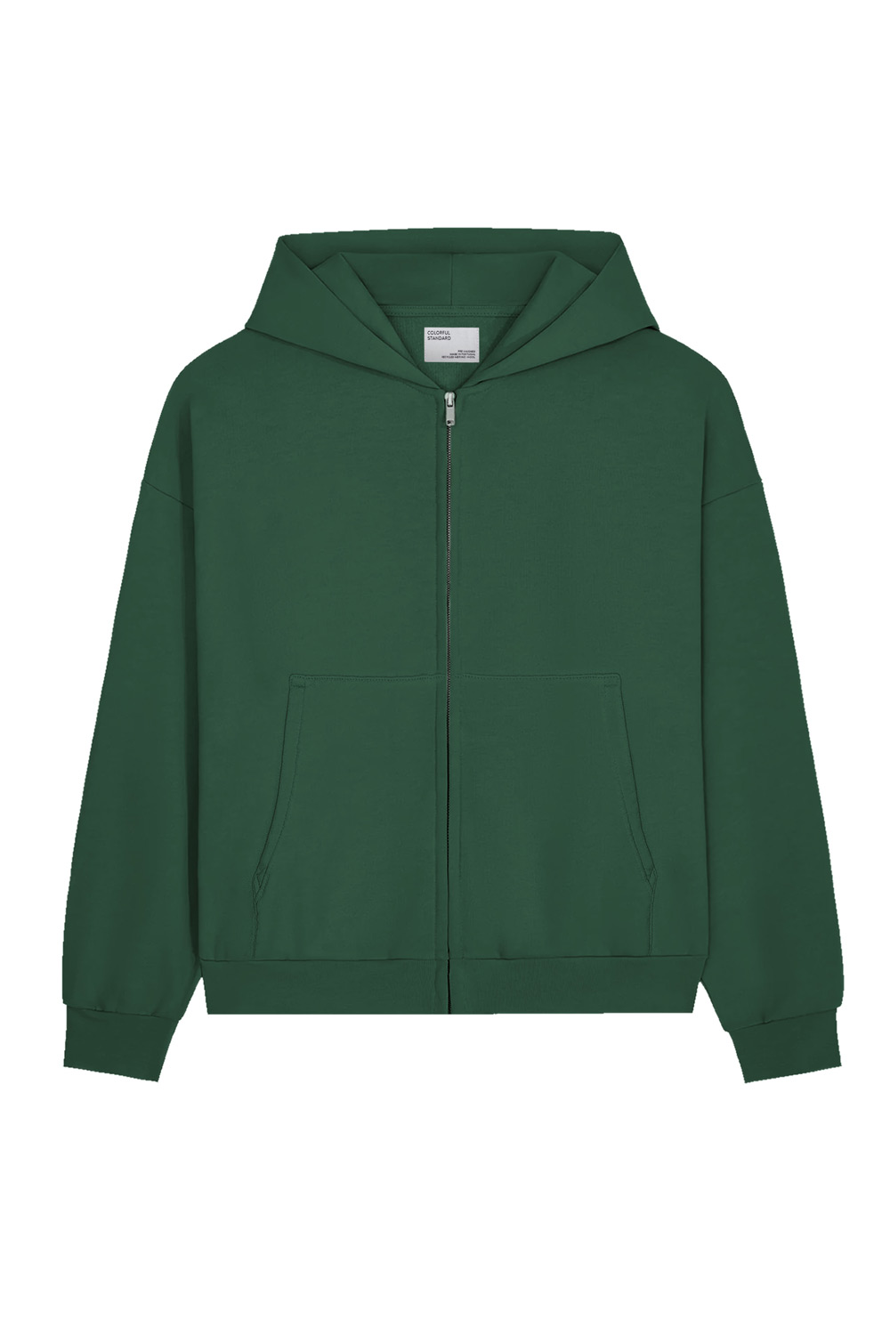 Unisex oversized sweatervest van 100% biologische katoen met rits en capuchon en twee steekzakken.