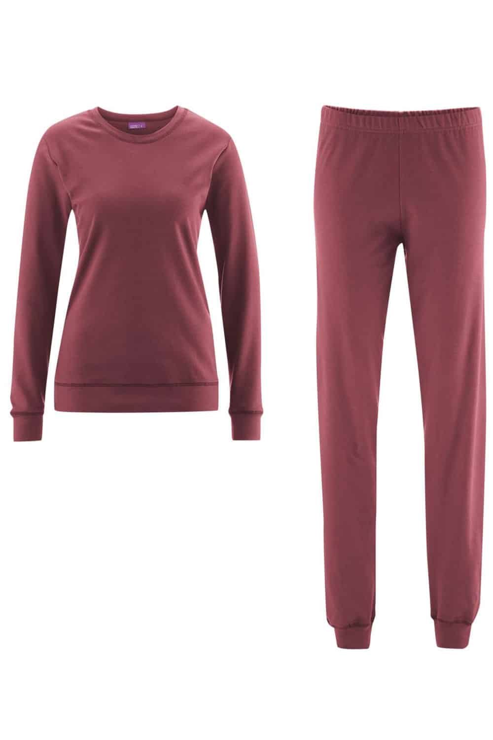Damespyjama biokatoen aubergine of bordeaux
