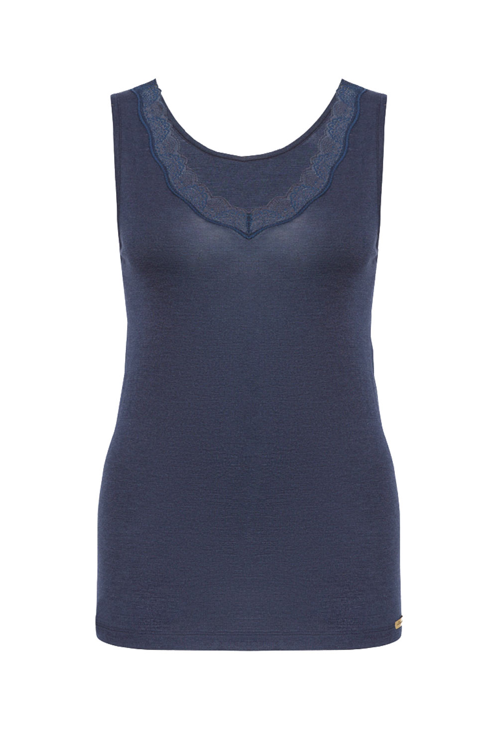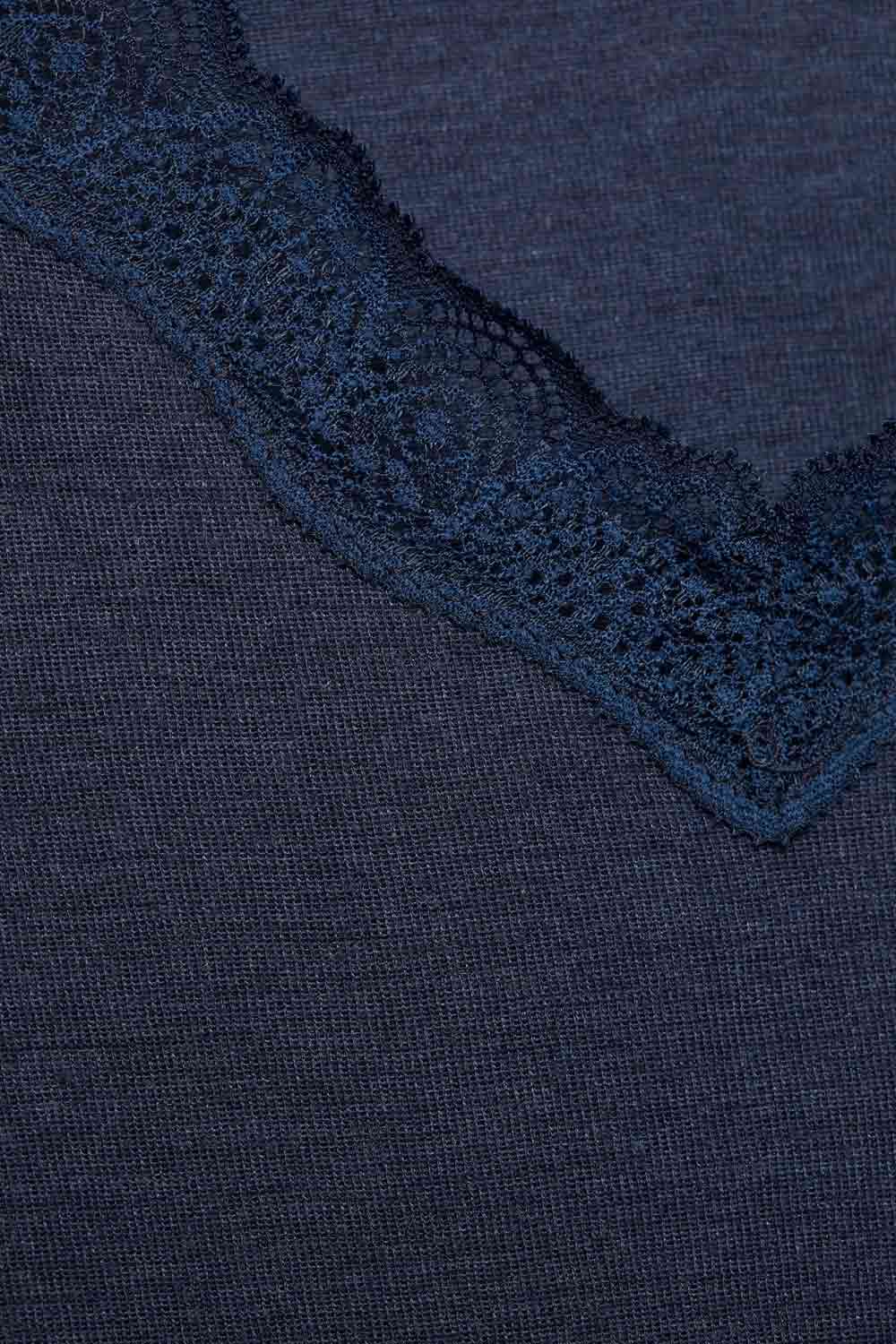 Hemdje v-hals wolzijde met kant donkerblauw