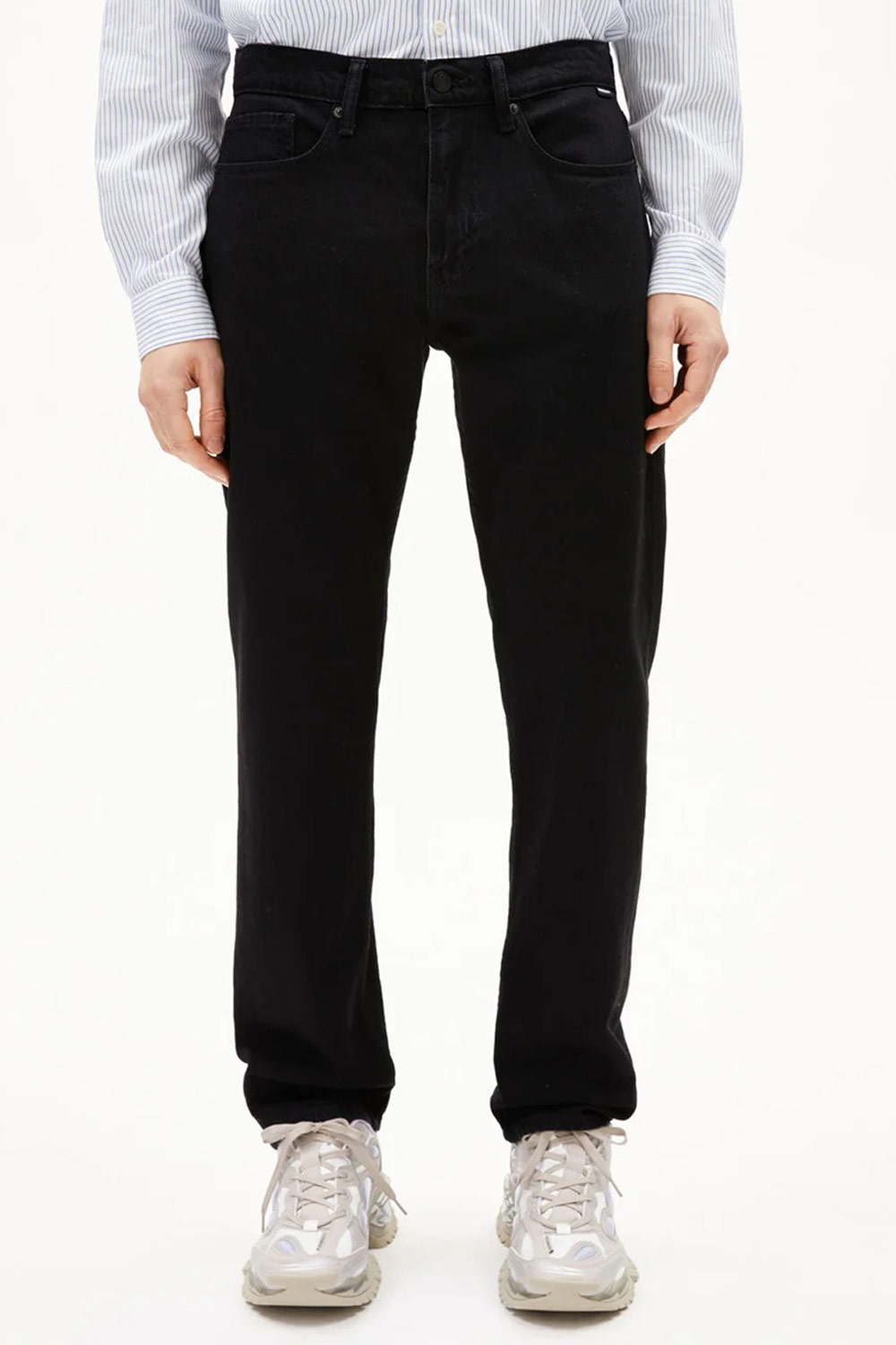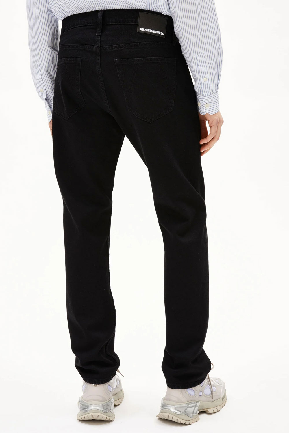 Zwarte 5-pocket spijkerbroek van 79% biologische katoen, 20% gerecyclede katoen en 1% elastaan.