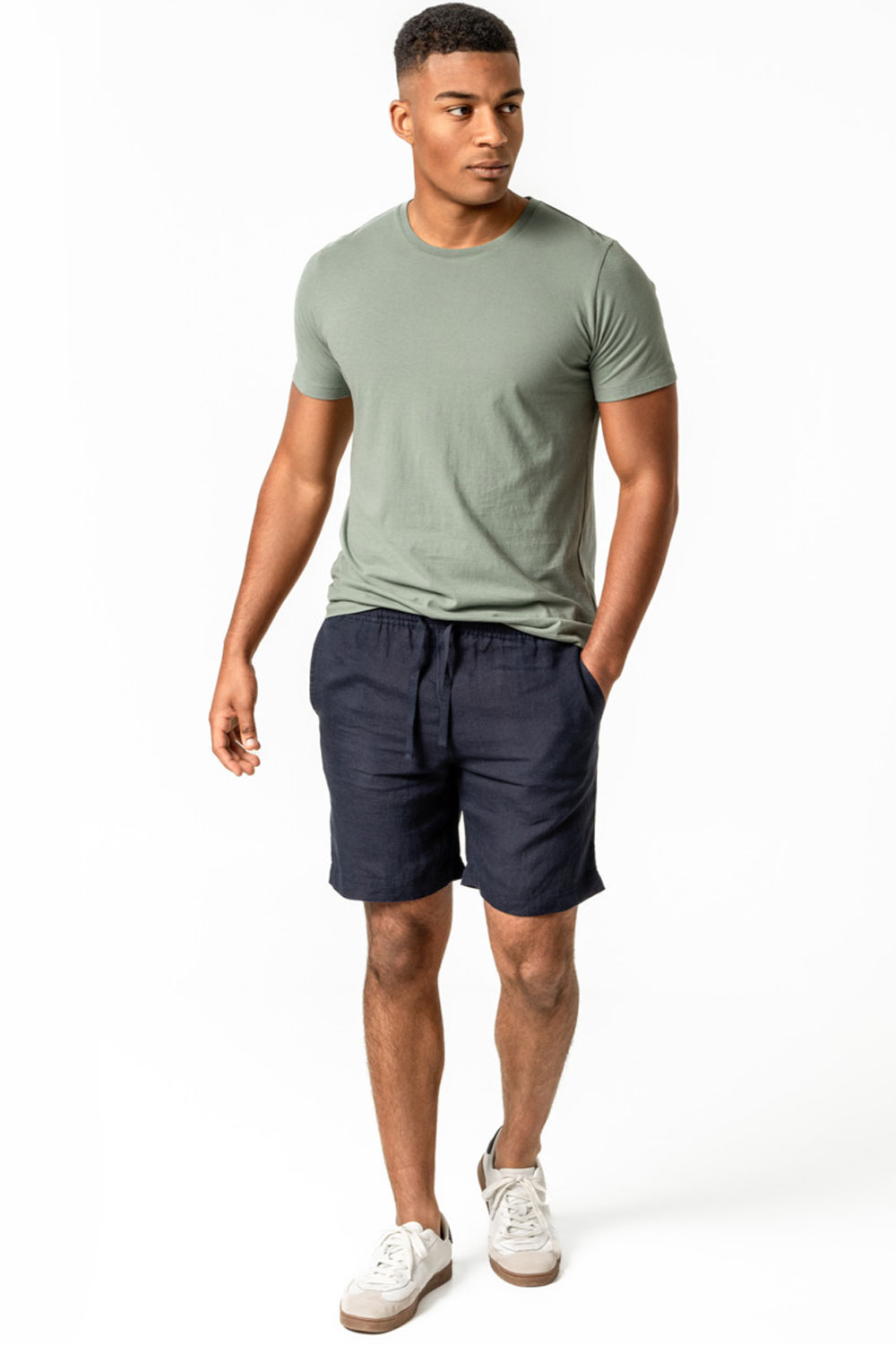Korte broek 100% linnen donkerblauw