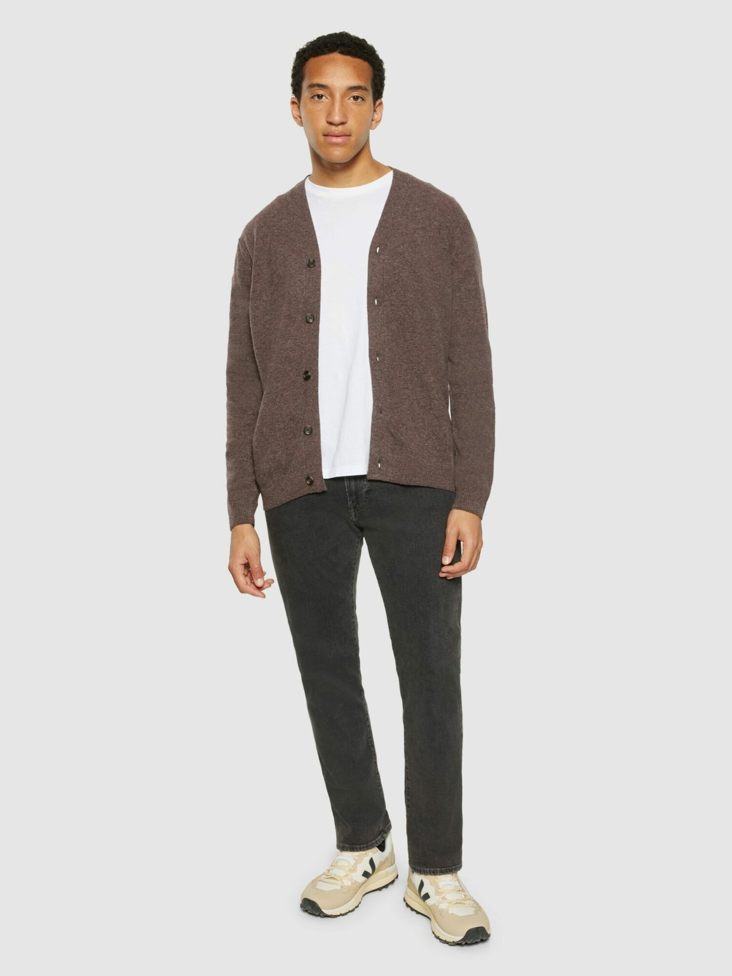 Klassiek vest met v-hals van 100% lamswol in mooie gemêleerde kleur bruin. De wol heeft het Responsible Wool Standard, een vrijwillig keurmerk voor dier- en milieuvriendelijke schapenhouderij.