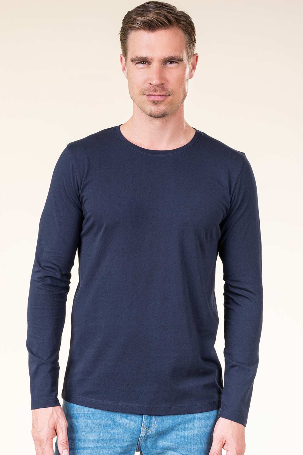 Heren longsleeve biokatoen donkerblauw