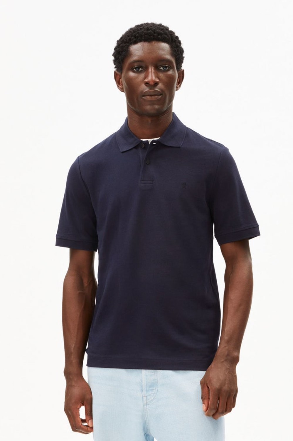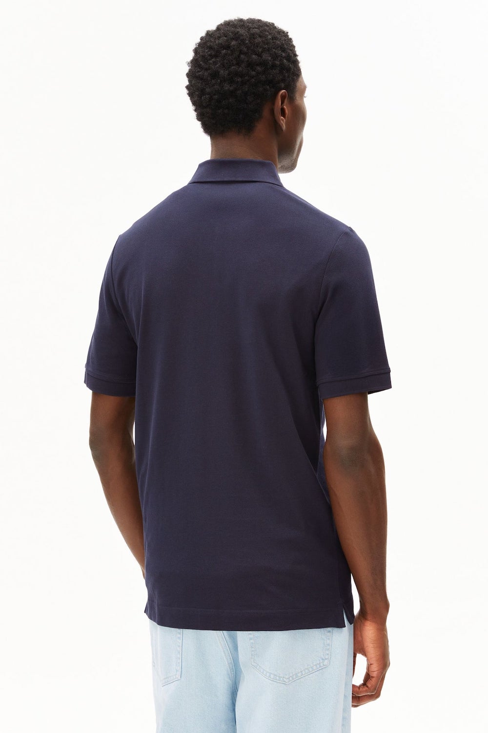 Zacht, donkerblauw poloshirt van 100% biokatoen. Het shirt is van de bekende ‘polostof’ (pique).