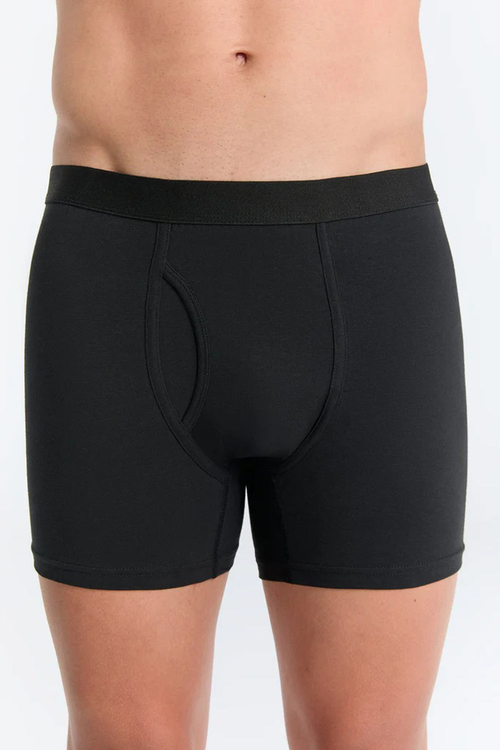 Een heerlijk zittende boxershort met een langere pijp. Gemaakt van zacht biologisch jerseykatoen. De boxershort heeft een brede elastieke band en een gulp. Materiaal: 95%biokatoen, 5% elastan.