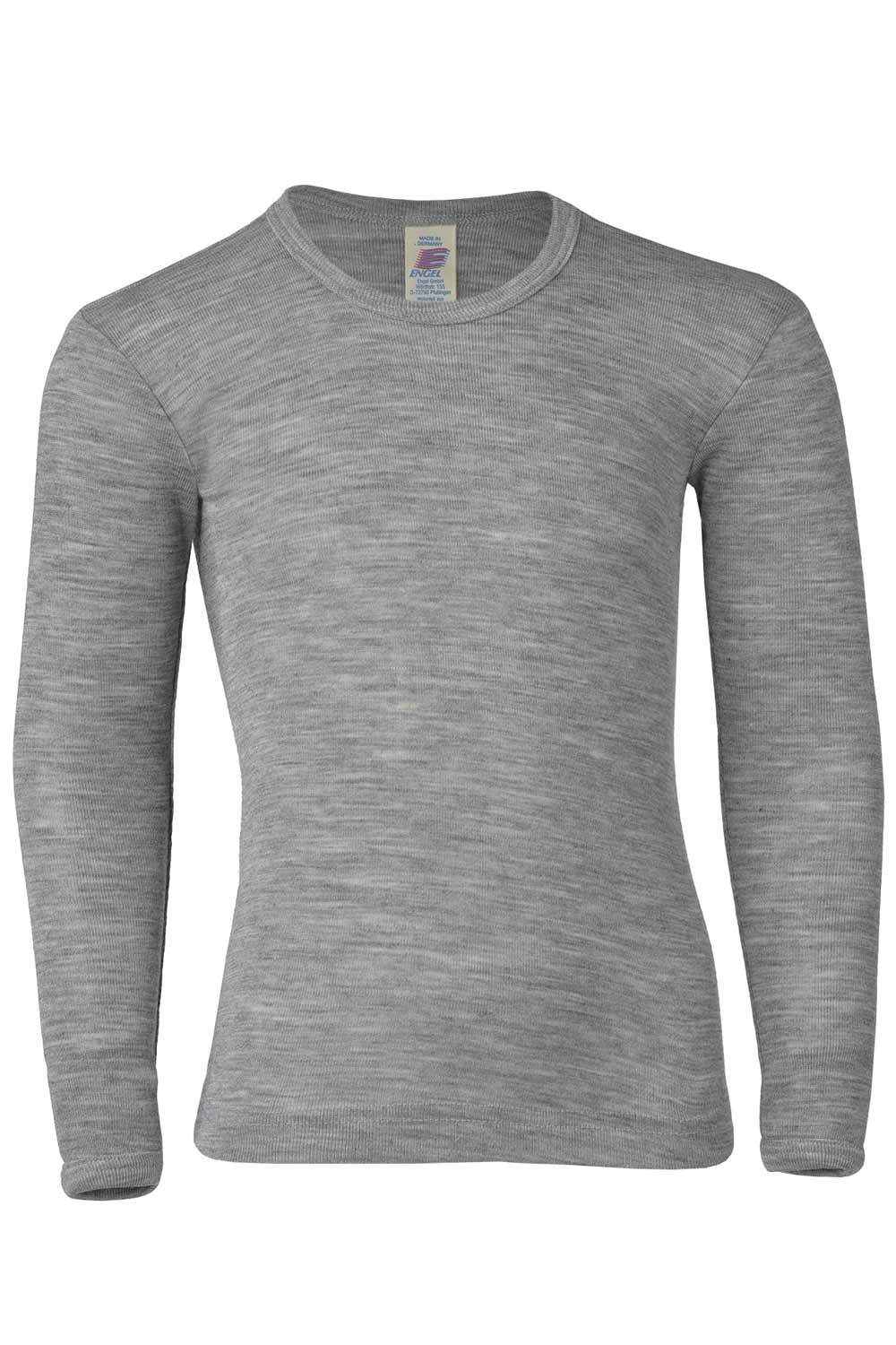 Effen wol-zijden kindershirt met ronde hals en lange mouwen. De prijs verschilt per maat. Als onder- of boven-shirt te dragen.