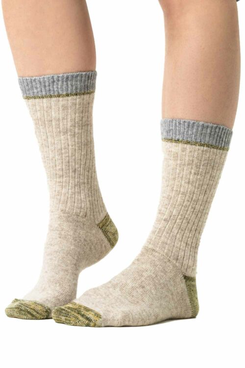 Wollen sokken met biokatoen beige-olijfgroen