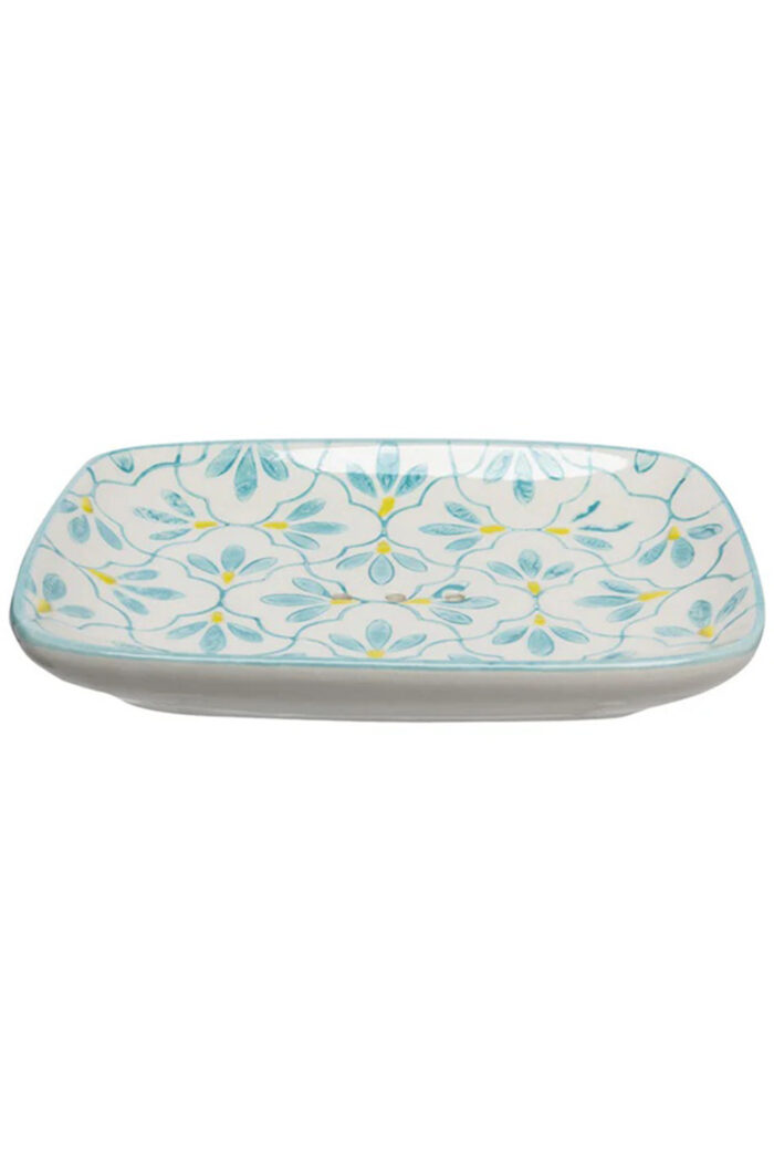 Keramiek schaaltje om zeep op te bewaren. Het zeepbakje heeft 3 gaatjes zodat zeep niet vastplakt en het water kan aflopen. Afmeting: 13,5 x 9,5 x 2 cm.